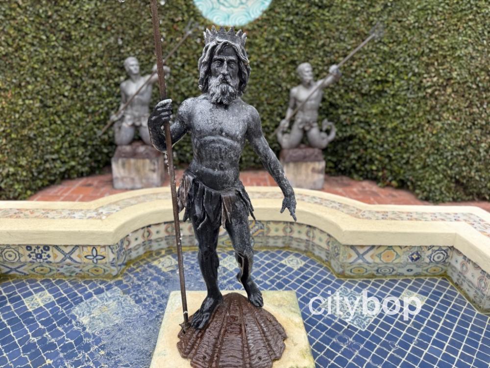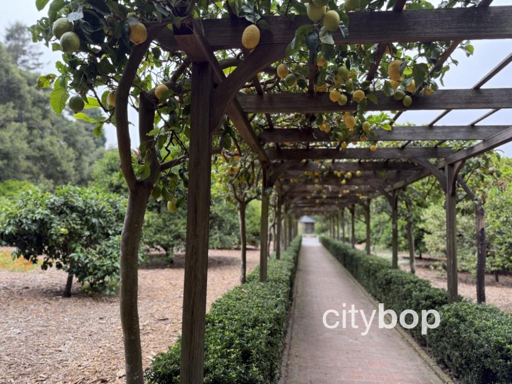 Lotusland seems to have every type of garden imaginable, and even a charming olive alley! I walked along a row of olive trees in Olive Allee, imported from Spain and France in the 1880s. The pathway led to an ornate fountain, that depicts a mythological sea creature. I could even see some of the orchard trees, visible to the right.