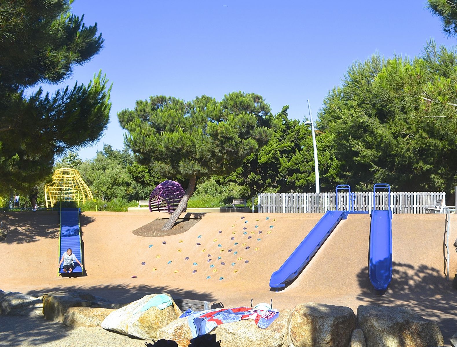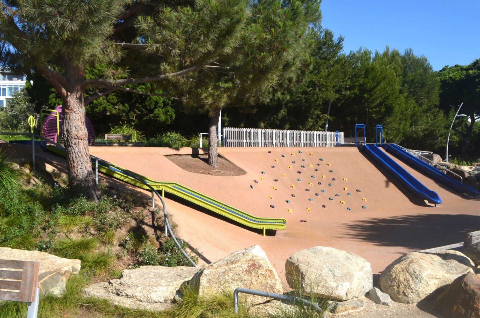 2. The modern playground on Discovery Hill has lots of fun slides and climbing structures.
