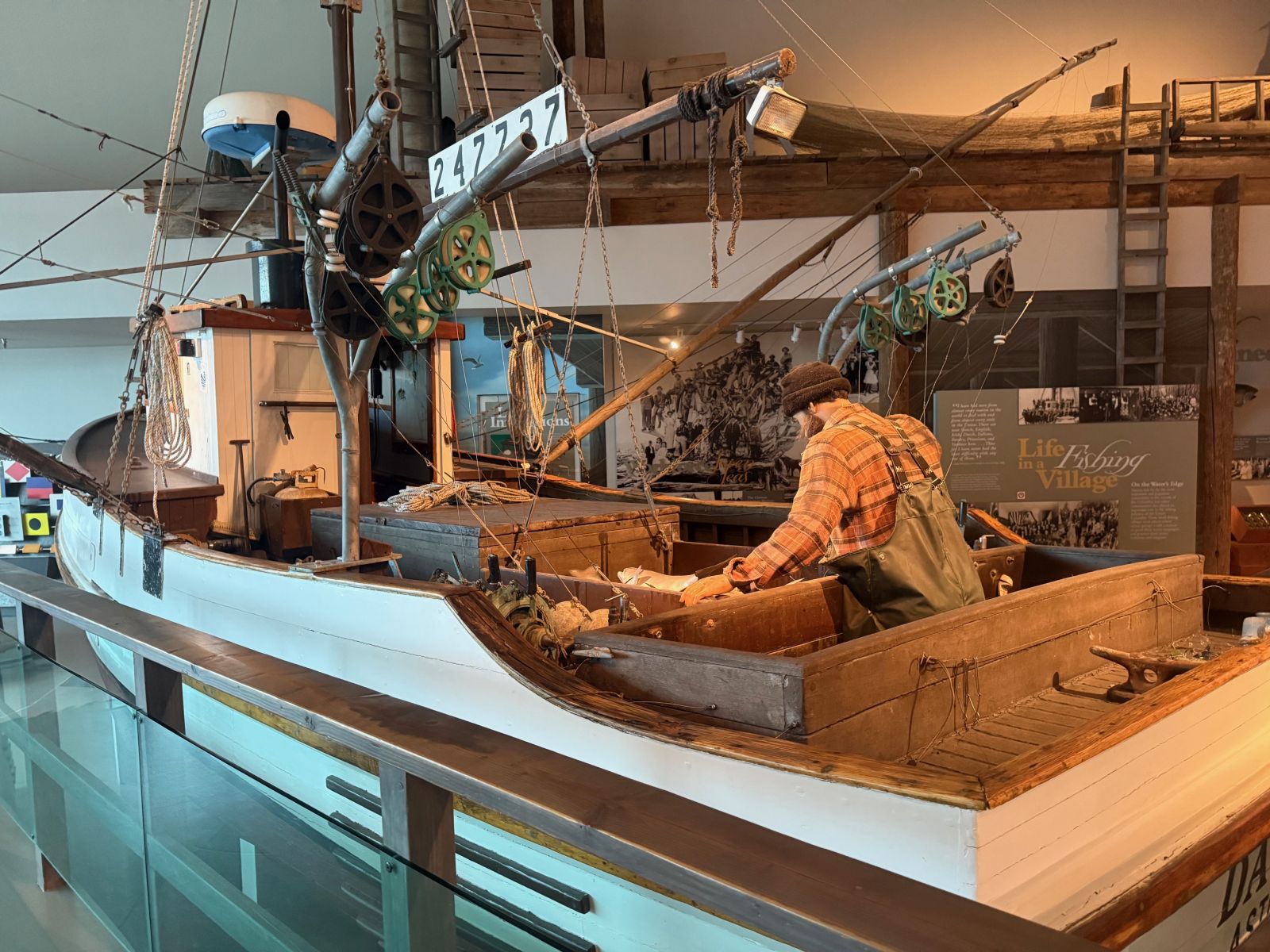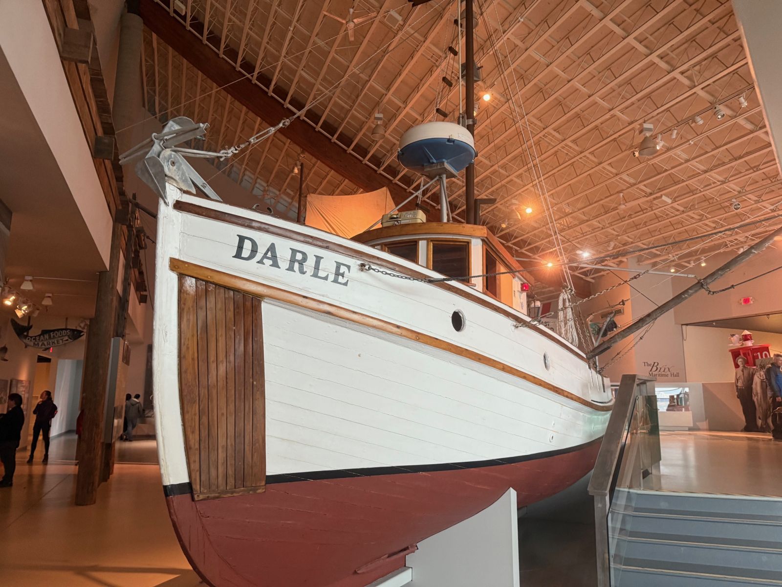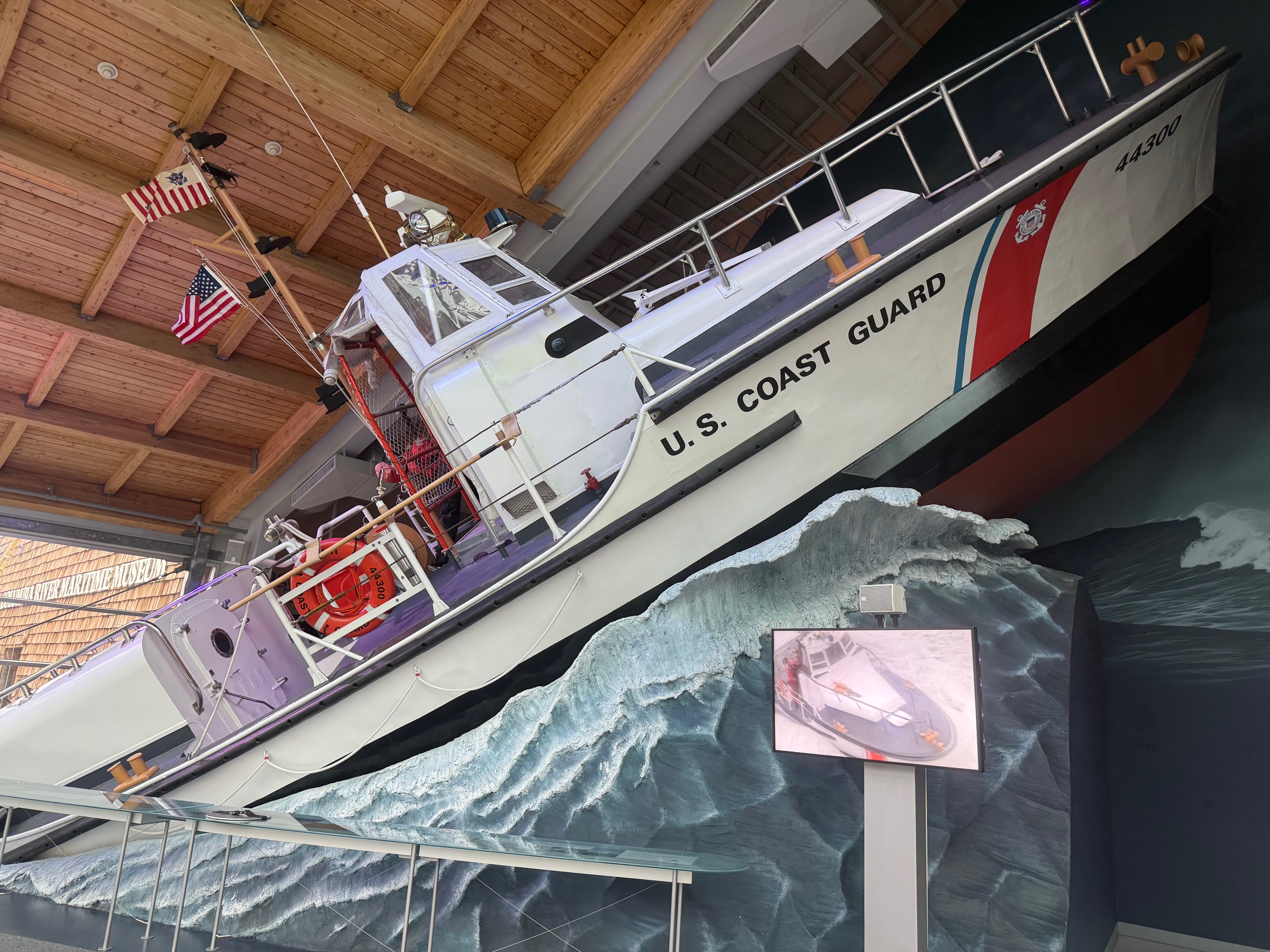 These boats have an ingenious design where they complete a full roll to the upright position if they tip over! You can see a simulation of this boat cresting a wave through the front window of the museum.