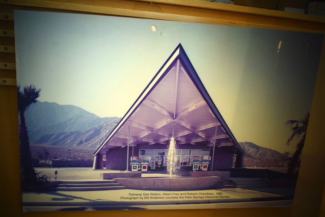 The Palm Springs Visitor Center is in a striking, mid-century, former gas station building, known as the Tramway Gas Station.  It's at 2901 N Palm Canyon Drive, Palm Springs, CA 92262.