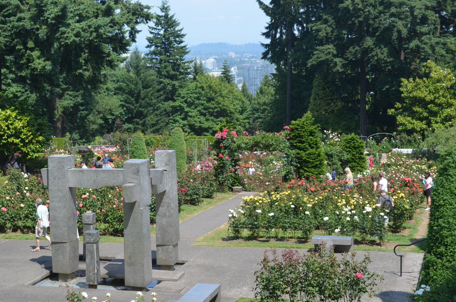 The Portland Rose Garden has magnificent city and Mt Hood views.