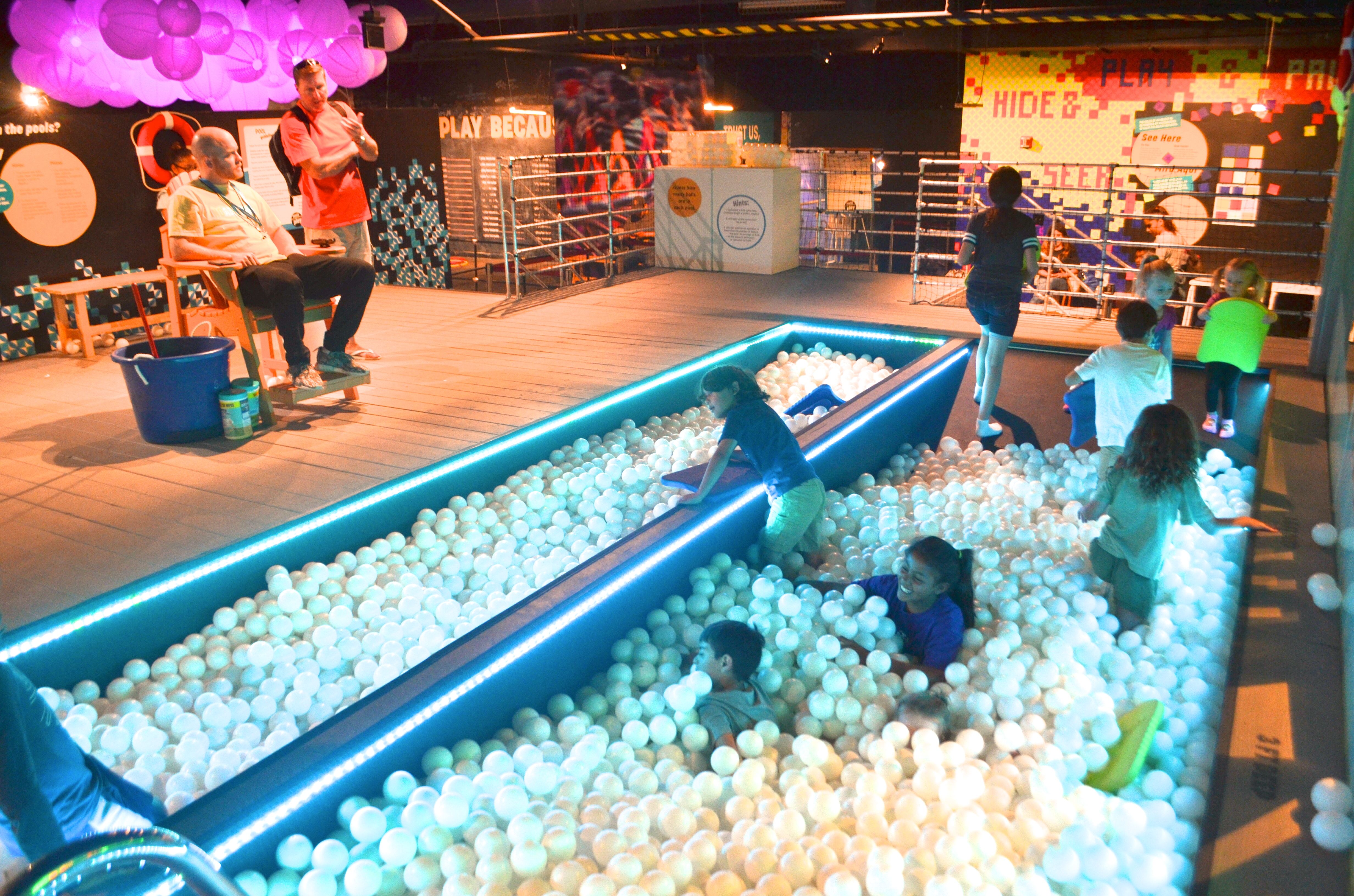 There are also some temporary exhibits upstairs. The Pause/Play Exhibit runs through September 2, 2019 and is a big playground. It features a ballpit (pictured), 31-foot slide, musical hopscotch with illuminated squares to activate, and a merry-go-round. Check to see what temporary exhibit is currently running.