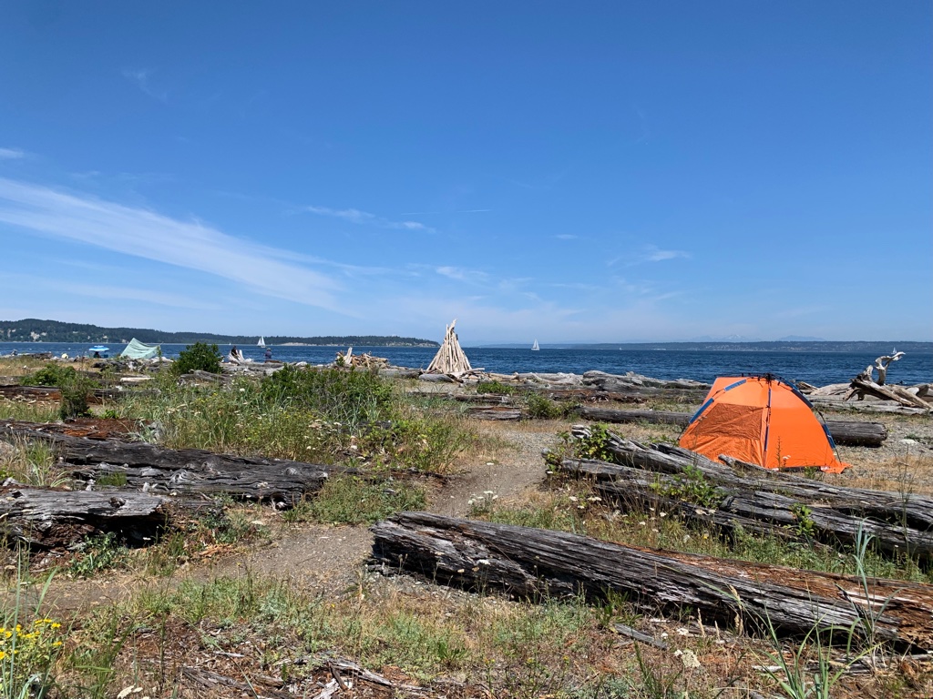 Fay Bainbridge Park is 5 minutes north of Winslow on the northeast corner of Bainbridge Island, directly south of the Hedley Spit. This 17-acre beachfront camping park has incredible views of Seattle, Mt Baker, Mt Rainier and the Cascades.