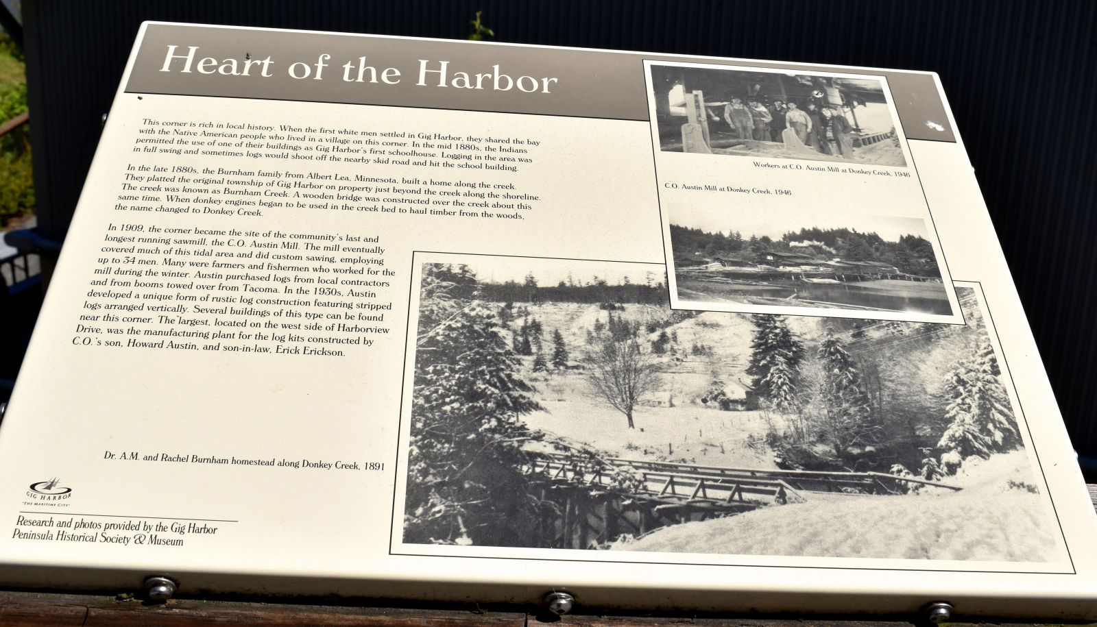 This is where the path follows the creek to empty out into Gig Harbor at the Austin Estuary. The Gig Harbor Museum is set back from the estuary.