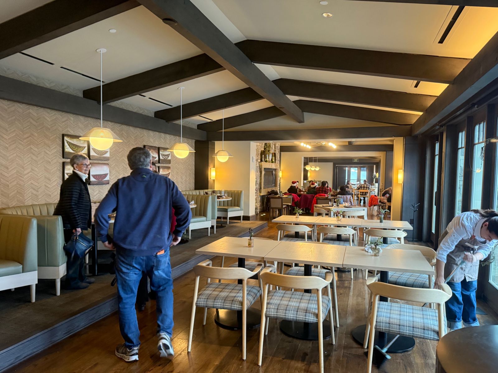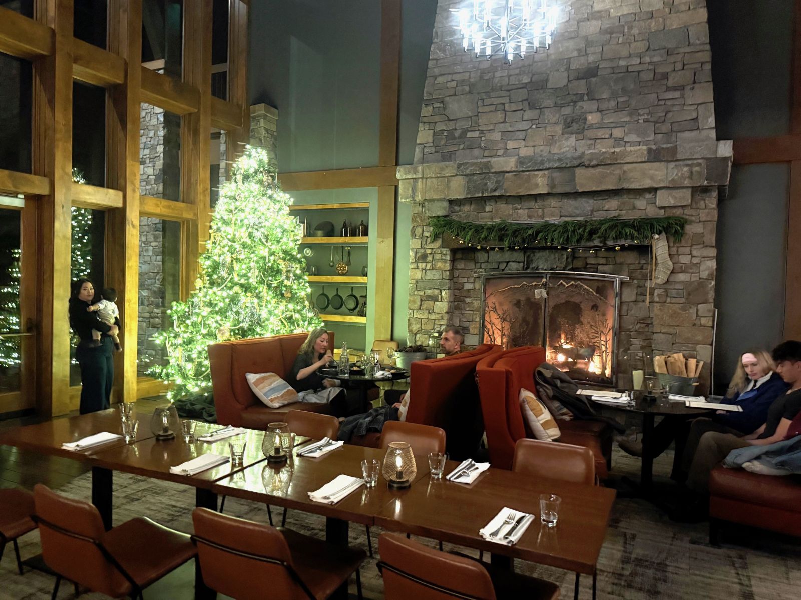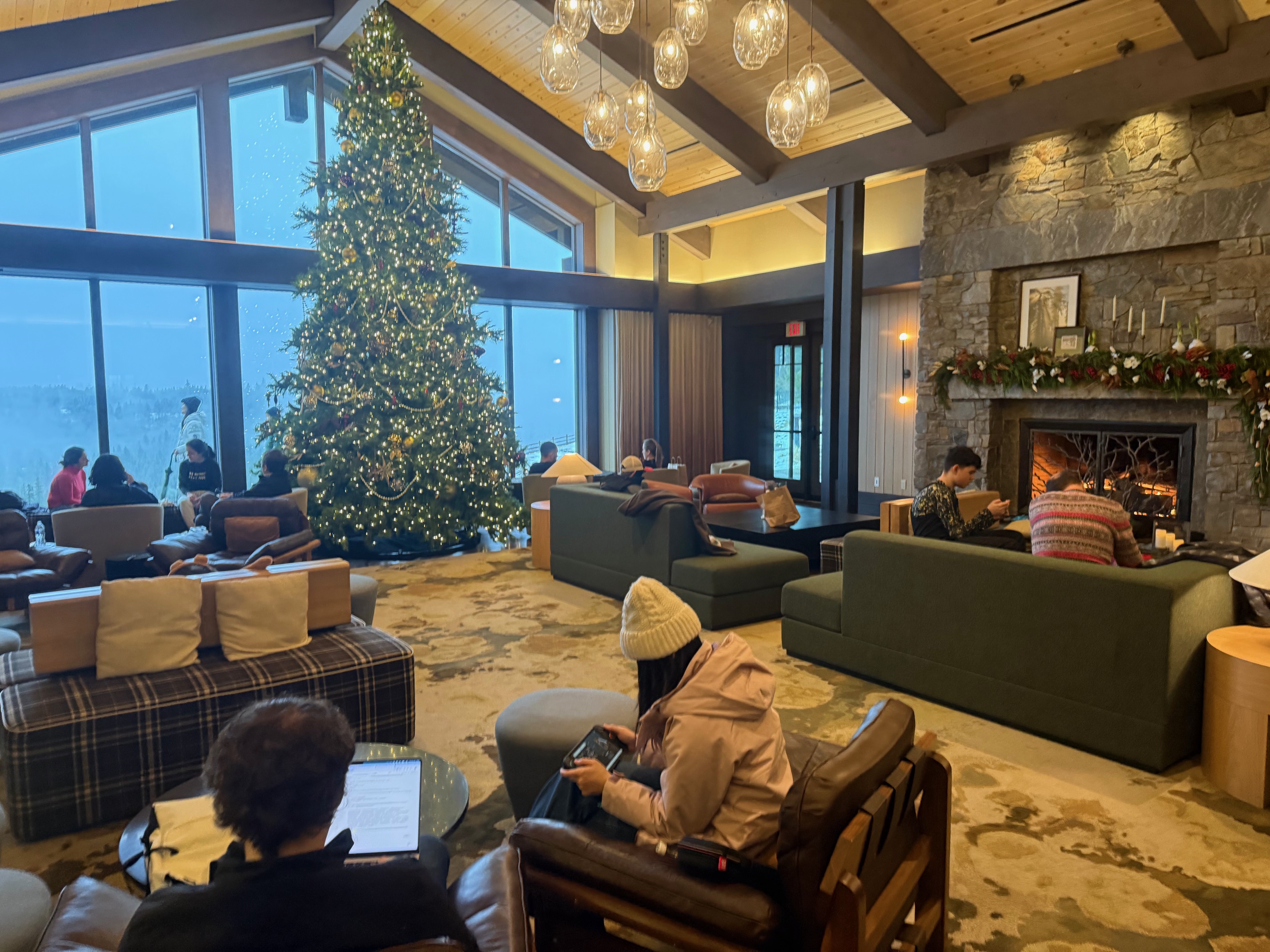 I was impressed by the beautiful lobby in Suncadia Lodge, complete with vaulted ceilings and magnificent views of the Cle Elum River valley. I found it particularly beautiful in Christmas with the festive decorations and roaring fireplace. I noticed plenty of people just hanging out here playing games or reading, and savoring the atmosphere. The lobby is also adjacent to The Source Plates and Pours restaurant, and a short walk to coffee and treats at The Source Mercantile.