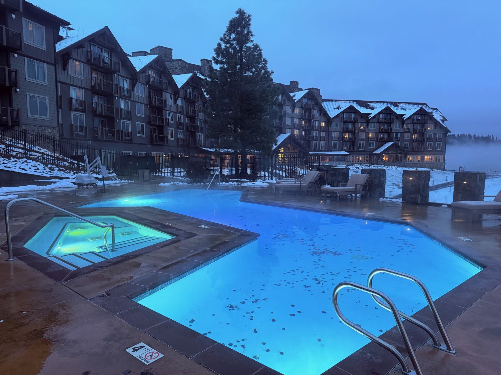 The inn is also close to the large Swim and Fitness Center. I was dazzled by the size of the outdoor pool there, which is a stunning sight in winter when the snow is coming down. The indoor pool gets busy, and has the added bonus of two water slides.