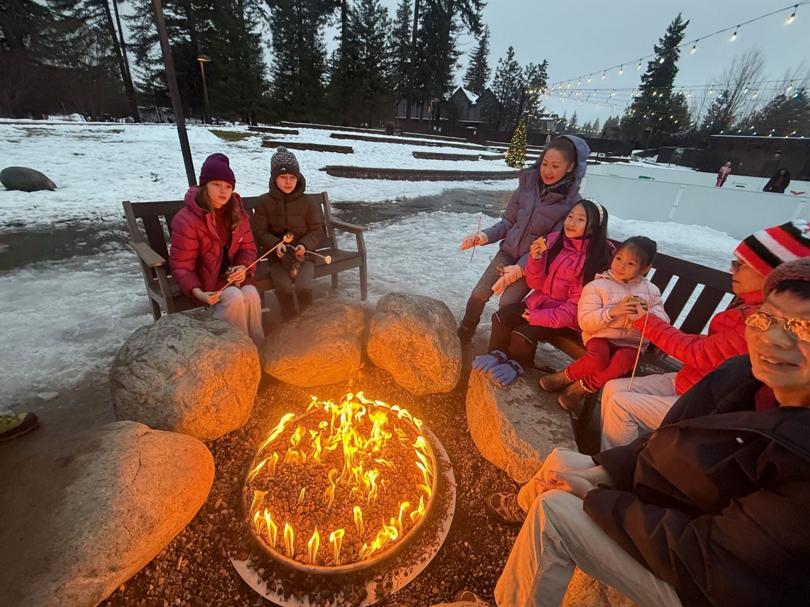 9. Cosy up by the firepit near the ice-skating rink.